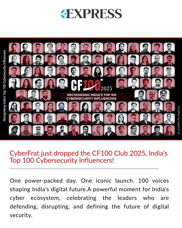 CyberFrat Raises the Bar: CF100 Club Unveils India’s Top 100 Cybersecurity Influencers of 2025!