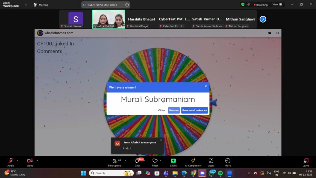 The highlight of the event was the much-awaited CF100 Grand Reveal, where CyberFrat unveiled the official CF100 Magazine, celebrating India’s Top 100 Cybersecurity Influencers. The grand reveal set the tone for an inspiring evening, followed by the prestigious CF100 Awards Ceremony. Influencers from across the country were honoured for their impact, expertise, and continued contributions to strengthening India’s cybersecurity landscape. The celebration brought together industry leaders, innovators, and rising voices, marking a milestone moment in CyberFrat’s mission to recognise and empower the cybersecurity community.